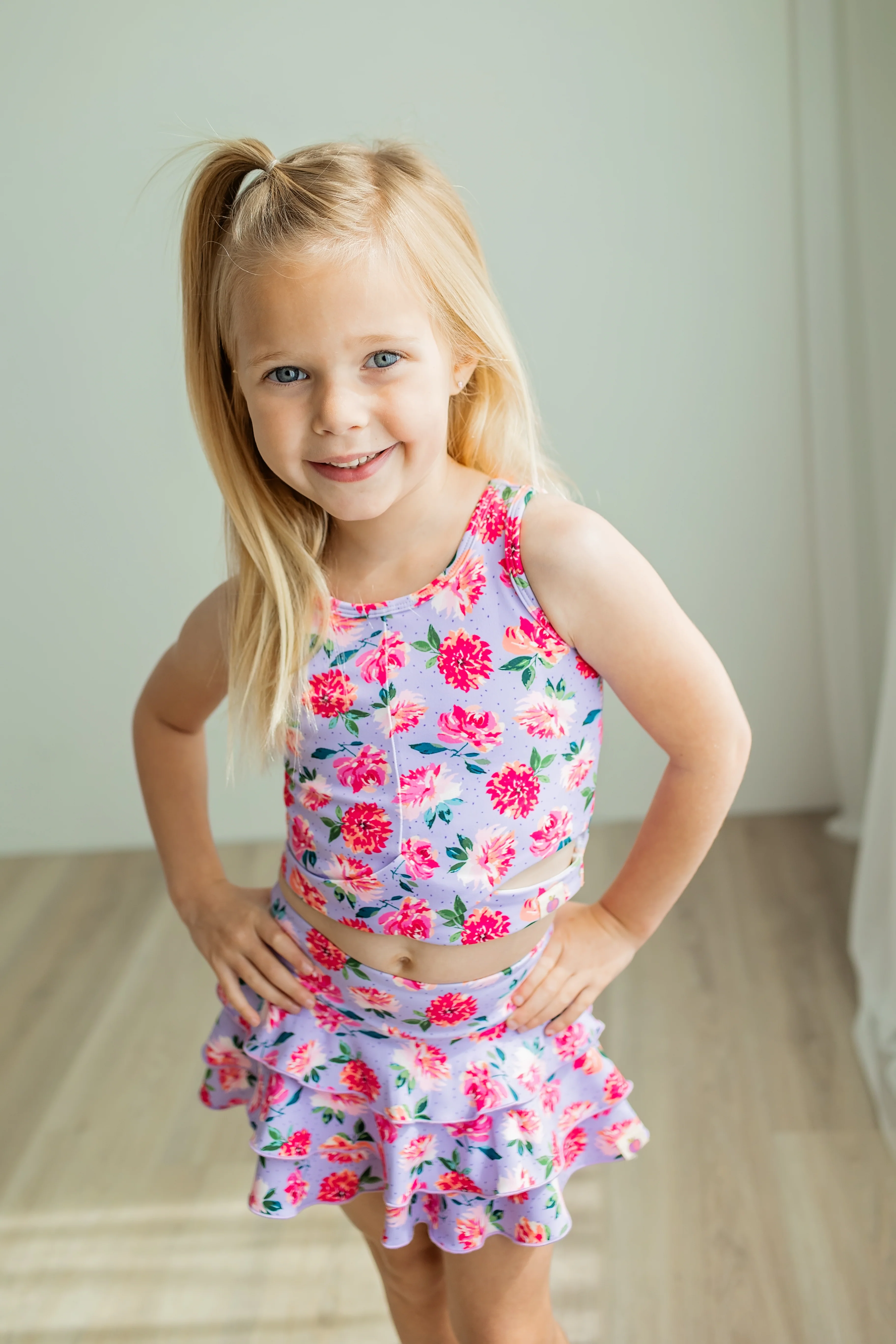 Get active with this playful orchid oasis tank! Featuring a wrap waist detail and a bow back, this tank is perfect for girls on the go. It's fun and unique design will keep her stylish and comfortable during any activity.