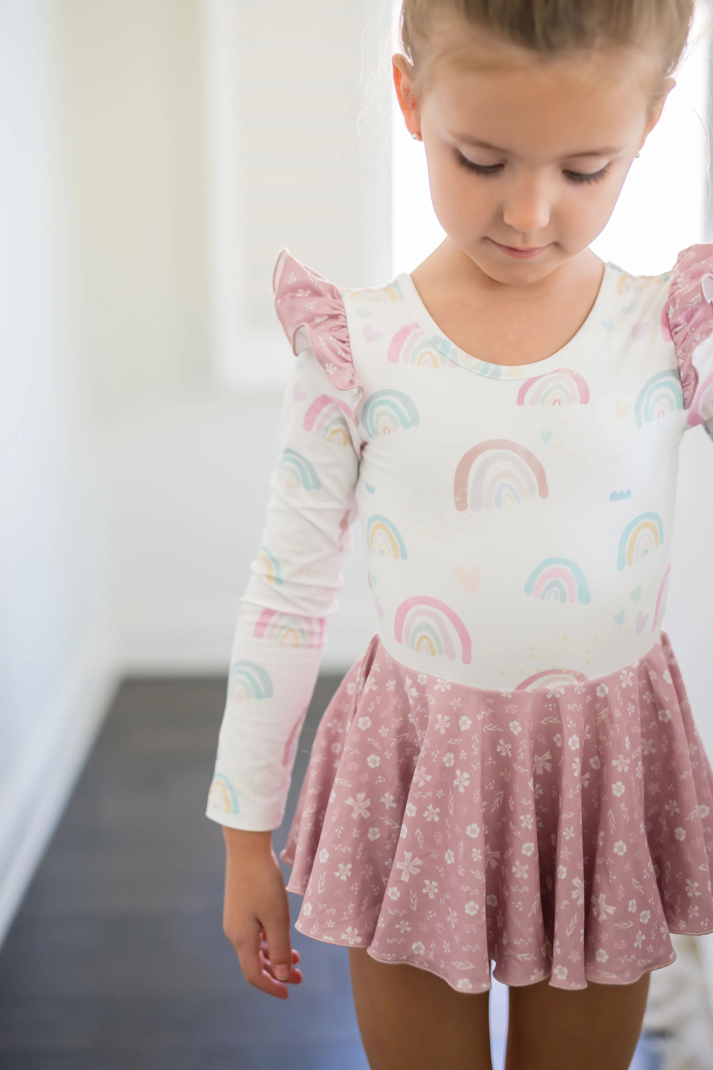 Let your moves sparkle in our Farrah Leotard - Over the Rainbow (Long Sleeve)! This vibrant design will make sure you stand out on the dance floor, without the need for a pot of gold! Put a little magic in your moves and stretch to the end of the rainbow.