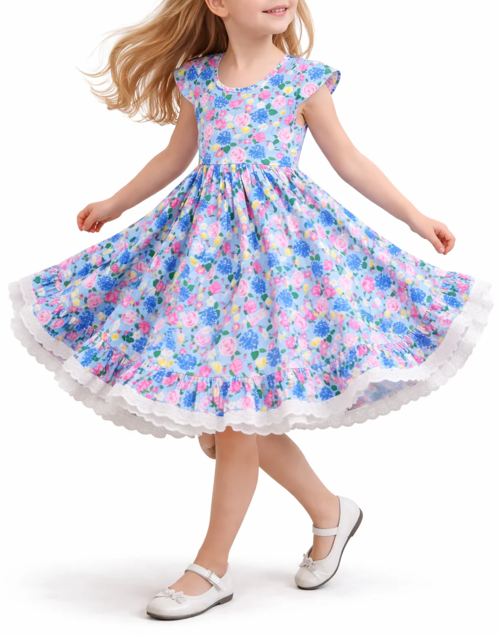 Twirl into springtime magic with the Myra Dress in enchanting Floral Fairytale Blue. This whimsical design features delicate floral prints that dance across soft, breathable fabric—perfect for playdates, garden parties, or everyday adventures. The charming blue palette captures the essence of a storybook dream, while the comfortable fit lets little ones move freely. A timeless piece that celebrates childhood wonder and seasonal style.